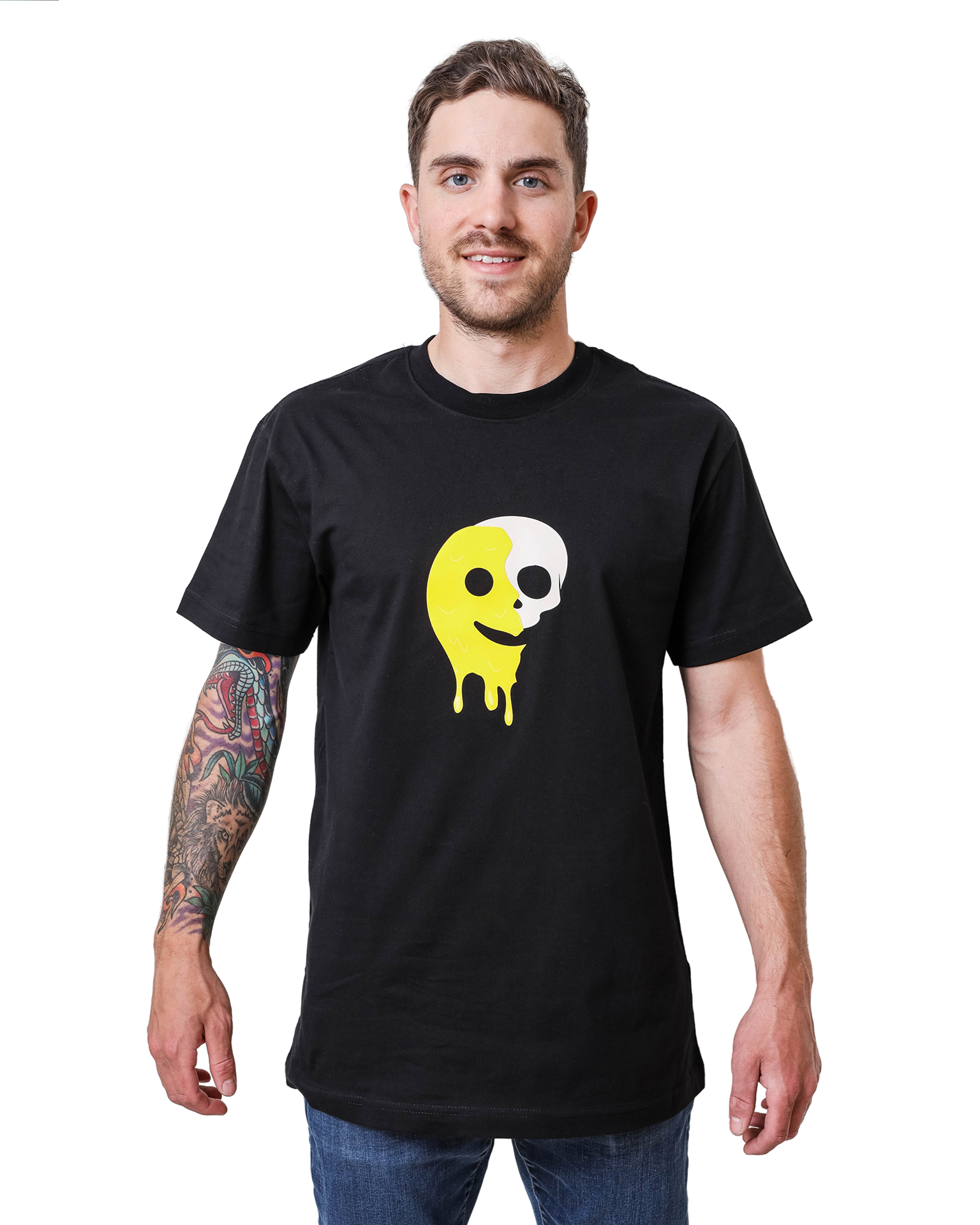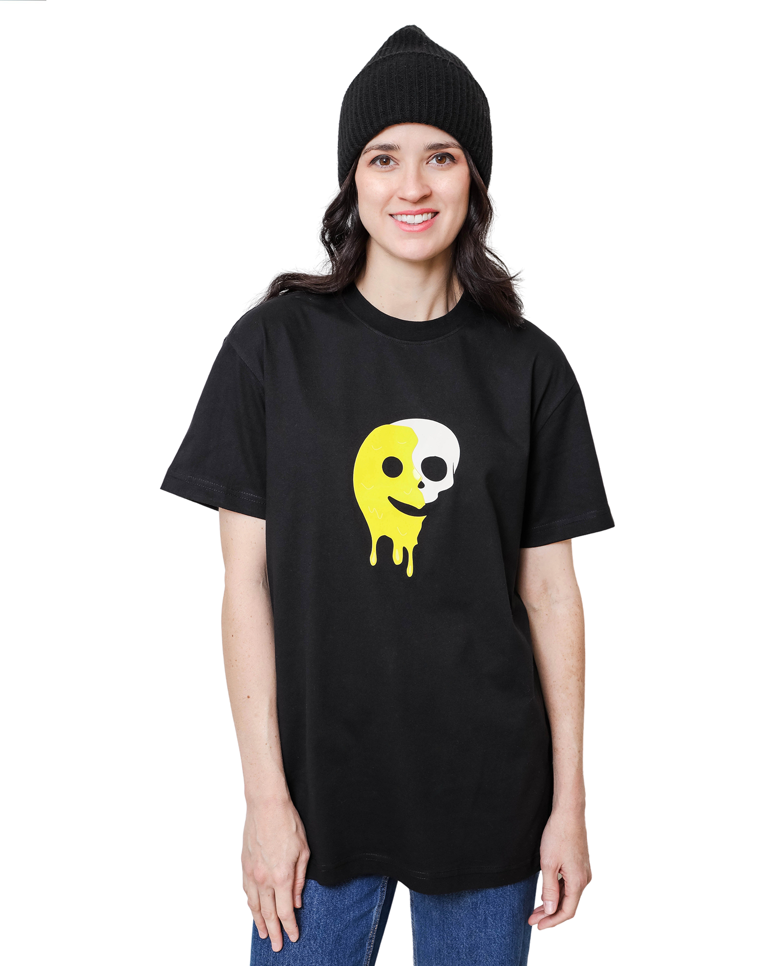 Get your smile on with SKVLL CVLT's smile honey black cotton tee! Featuring boxy, drop shoulder cuts and a silk screen design with a clear high density layer for a unique visual and tactile experience.
